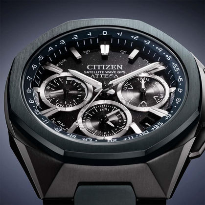 ベゼルとバンドの中駒にDLCブルーを採用。ラメを練り込んだブラックの文字板は、漆黒の静かな宇宙空間に浮かぶ星々を表現しました。ブラックとダークブルーの組み合わせが大人の落ち着きと特別感を演出します。