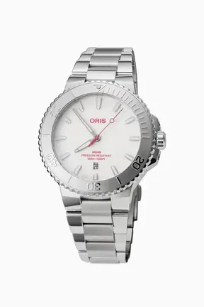 オリスの中でもベストセラーのアクイスコレクション。中でも日本で特に人気の『アクイス・デイト・レリーフ』をベースにした日本限定モデルは、洗練されたホワイトダイヤルに鮮やかなレッドのロゴと秒針を配置した美しいデザインを特徴としています。