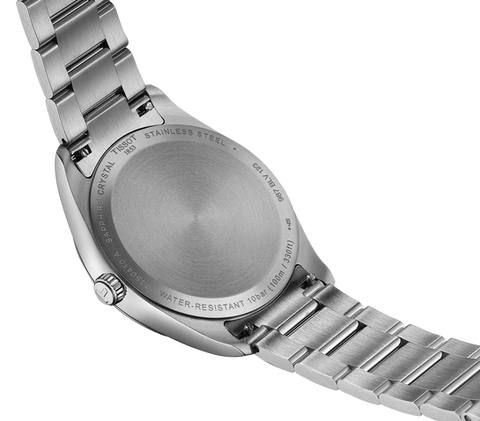 高品質の 316L ステンレススチールとガラス素材に傷防止加工サファイヤクリスタルガラス採用し SuperLuminova ® コーティングを施した針と10気圧防水を併せ持ったティソのベストセラーの中で大きな位置を占める意欲作です。