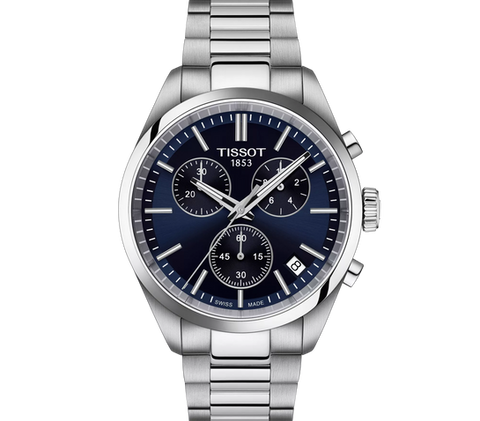 PR100コレクションは、様々なカラーのクラシックなクォーツ・クロノグラフです。スポーティーでありながら上品なこのタイムピースは、ブレスレットの中間にポリッシュ仕上げを施し、より光沢のある外観に仕上げています。G10.212クロノ・クォーツ・ムーブメントは、10気圧(100m/330フィート)防水を備え、精度と堅牢性を提供します。また、針状の針にはスーパー ルミノバ®コーティングが施され暗い場所での視認性も保証されています。